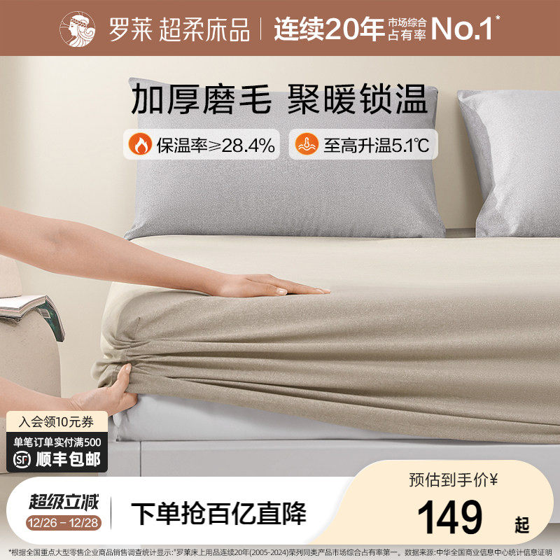 秋冬加厚磨毛100s全棉床单双人单件床笠宿舍单品1.5/1.8m床罩