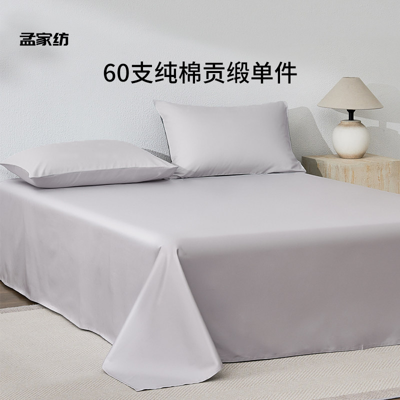 60支纯棉床单单件床笠全棉纯色A类贡缎新疆长绒棉被套学生床品
