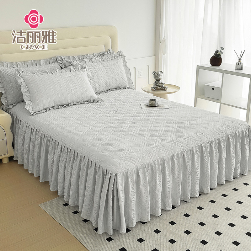 2025新款公主风泡泡棉夹棉床裙单件床笠带花边纯色床罩防尘遮丑帘
