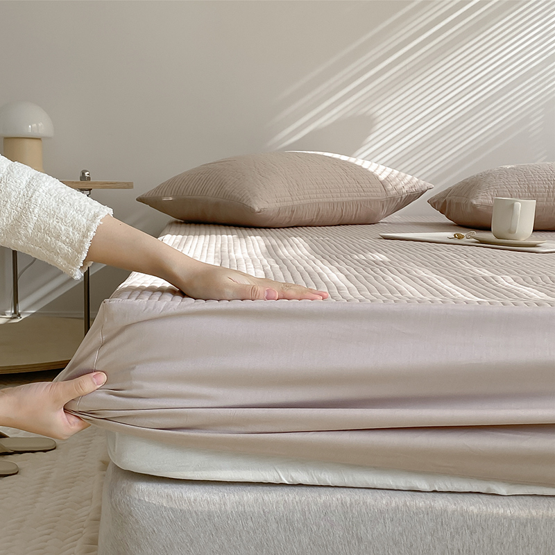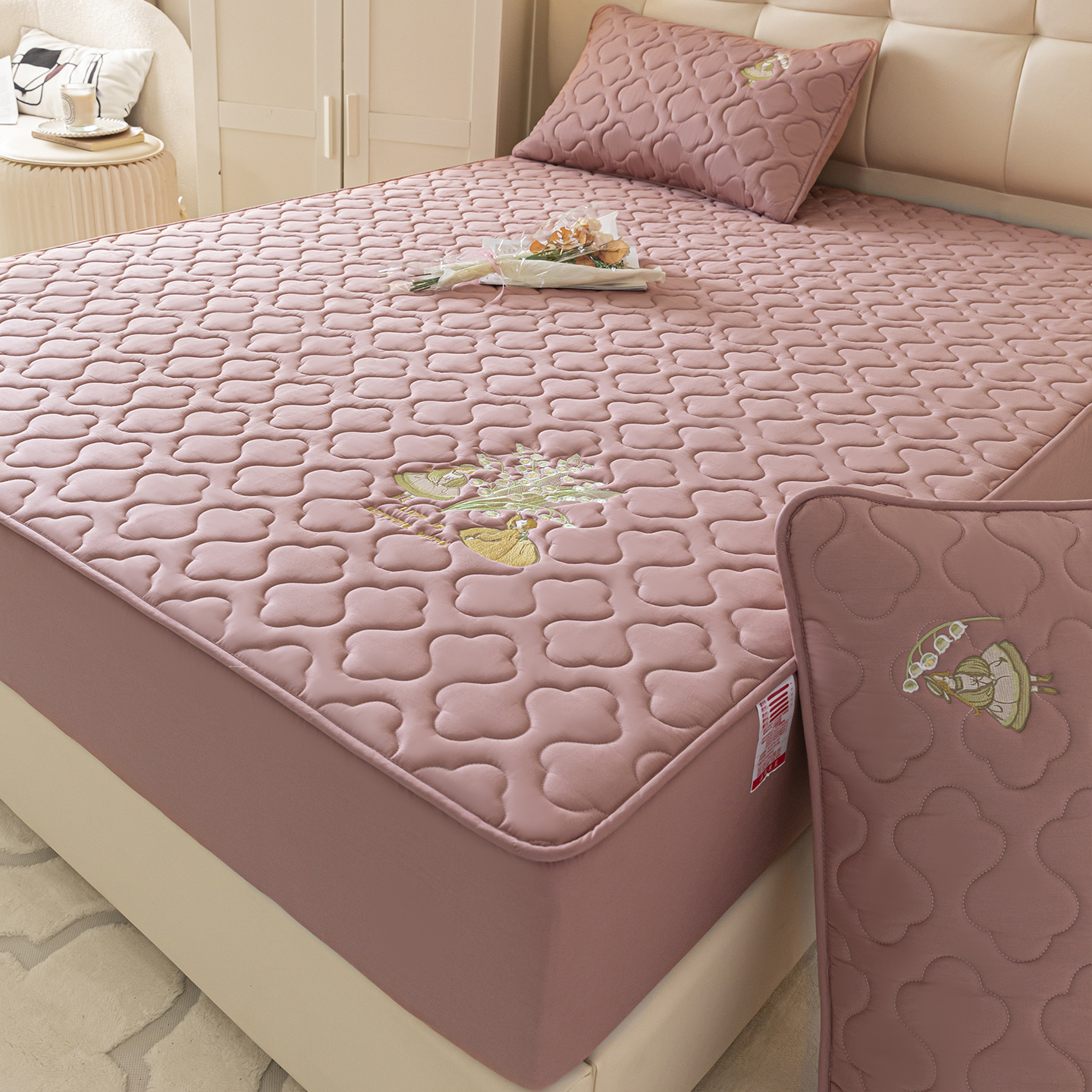 韩式简约纯色绗缝夹棉床笠纯棉单件加厚全棉床罩席梦思床垫保护罩