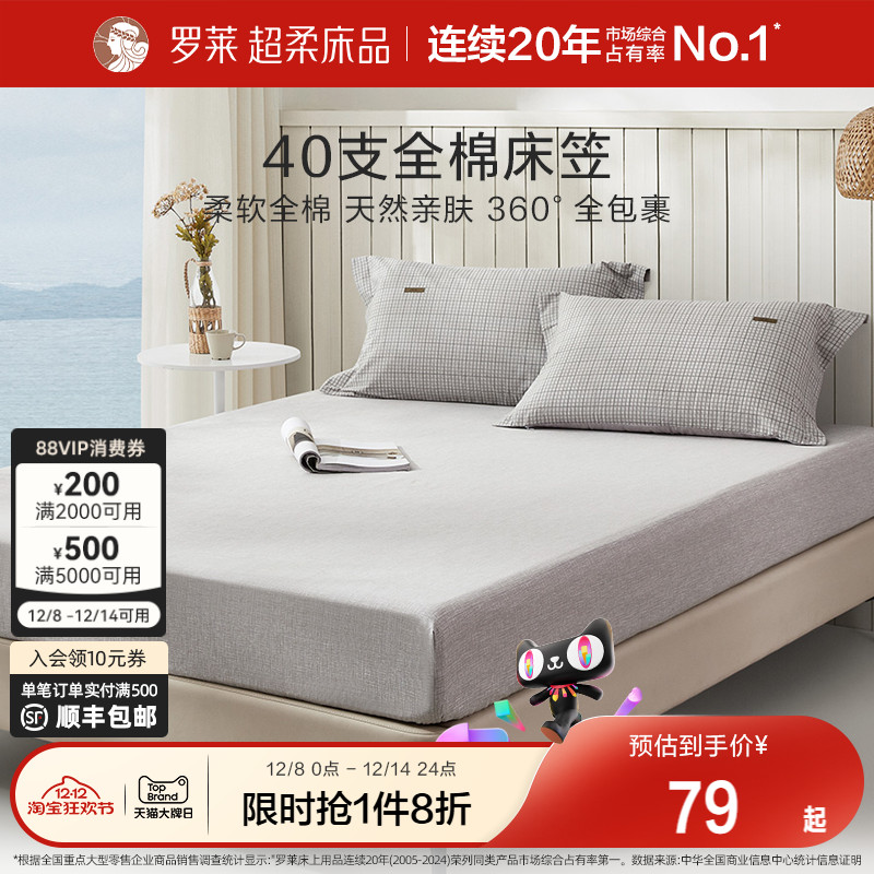 罗莱家纺床笠纯棉单件席梦思床垫保护套四季通用全棉防滑床单床罩