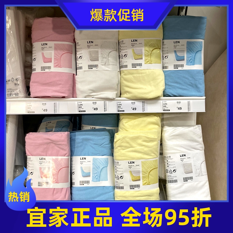 IKEA宜家LEN莱恩床垫罩家用宝宝床床笠纯棉单件纯色保护套