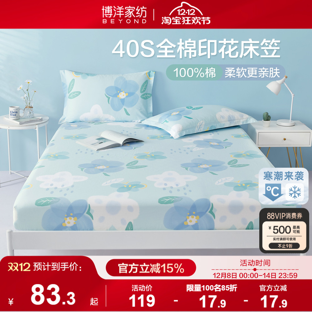 博洋印花床笠纯棉单件席梦思床垫保护套春秋四季全棉防滑床单床罩