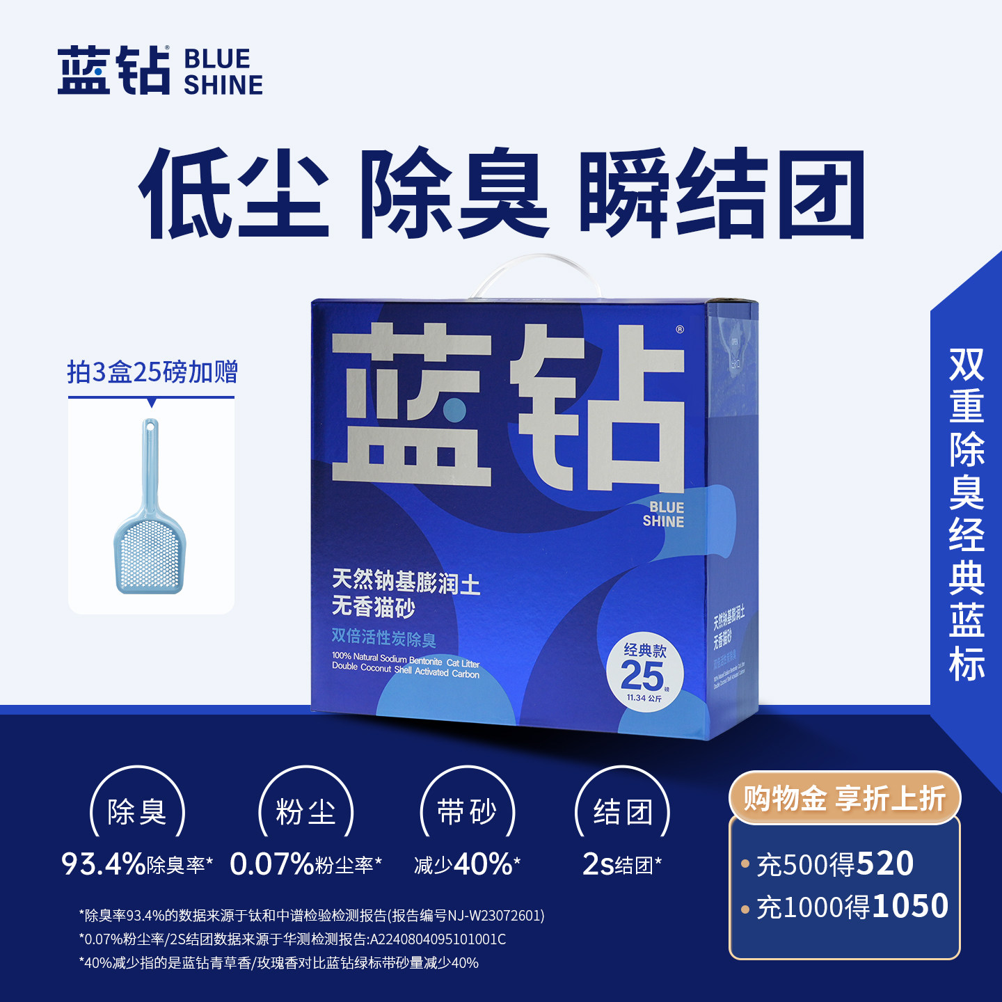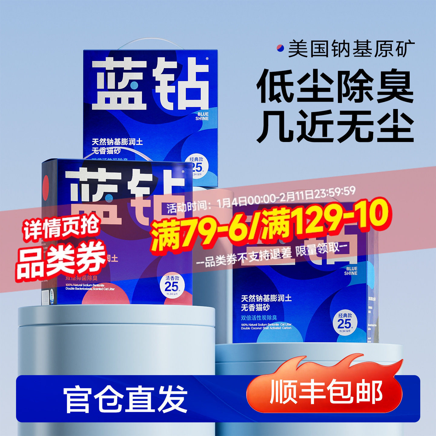 蓝钻蓝标猫砂矿砂钠基矿石膨润土除臭无尘不粘11.3公斤官方旗舰店