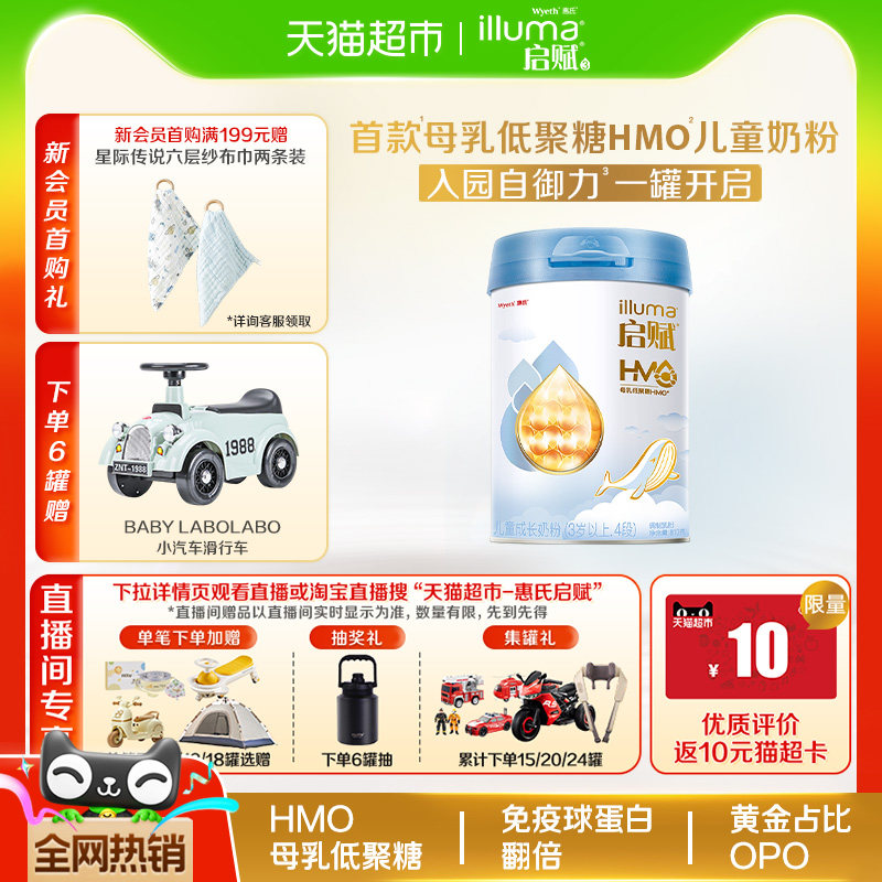 【官方正品】惠氏启赋蓝钻3段HMO黄金OPO婴幼儿奶粉1-3岁850g*6罐