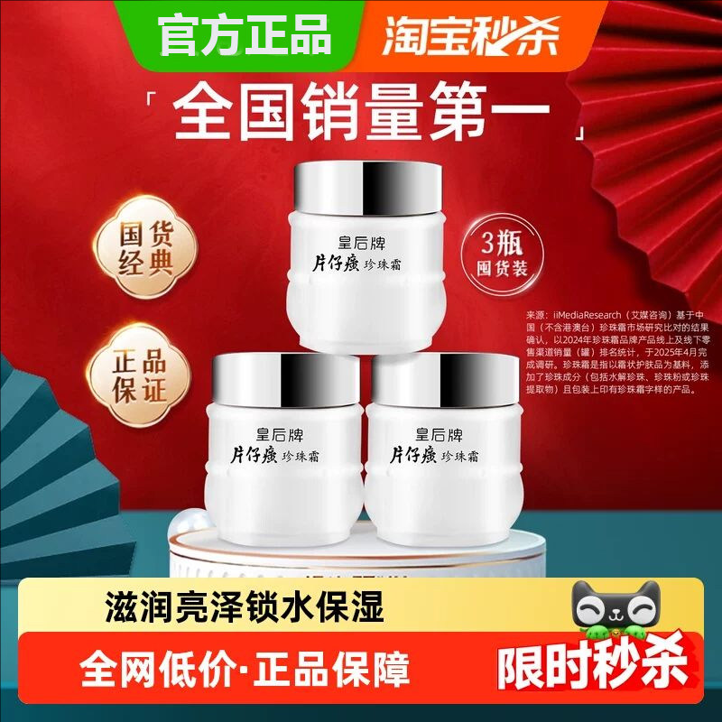 秒杀三瓶装丨片仔癀皇后牌珍珠霜补水保湿滋润面霜官方旗舰店正品