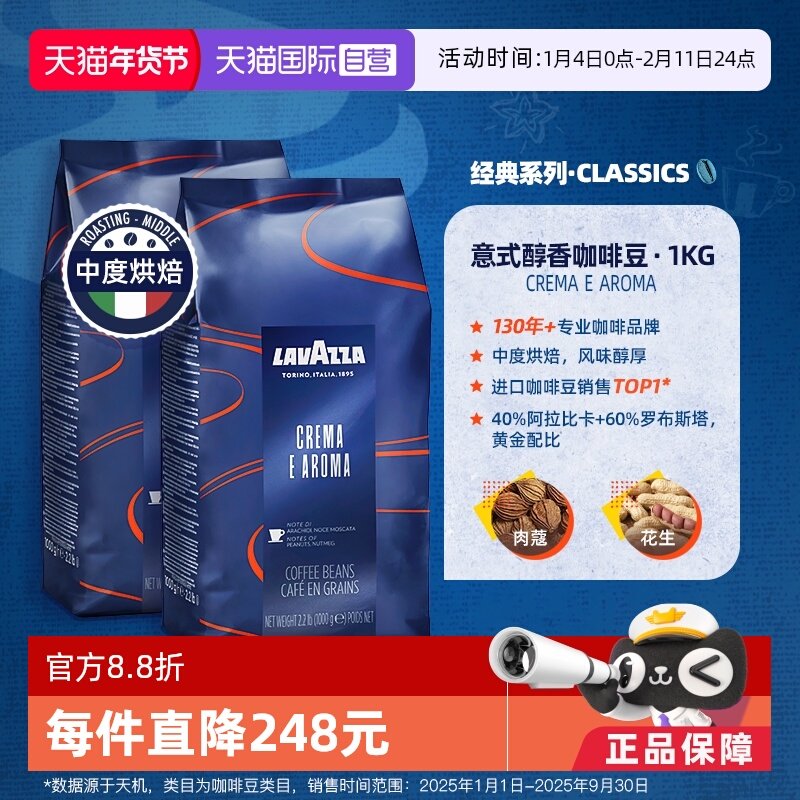 LAVAZZA拉瓦萨咖啡豆醇香型意大利意式中度烘焙1kg旗舰店原装进口