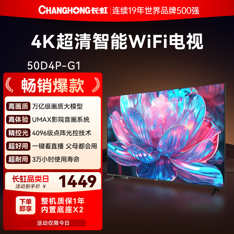 长虹50D4P-G1 50英寸4K智能超高清家用液晶电视机官方正品补贴55
