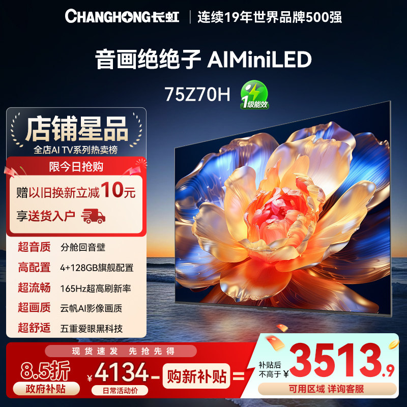 长虹电视欧宝丽75Z70H 75英寸智能网络语音MiniLED4K电视139