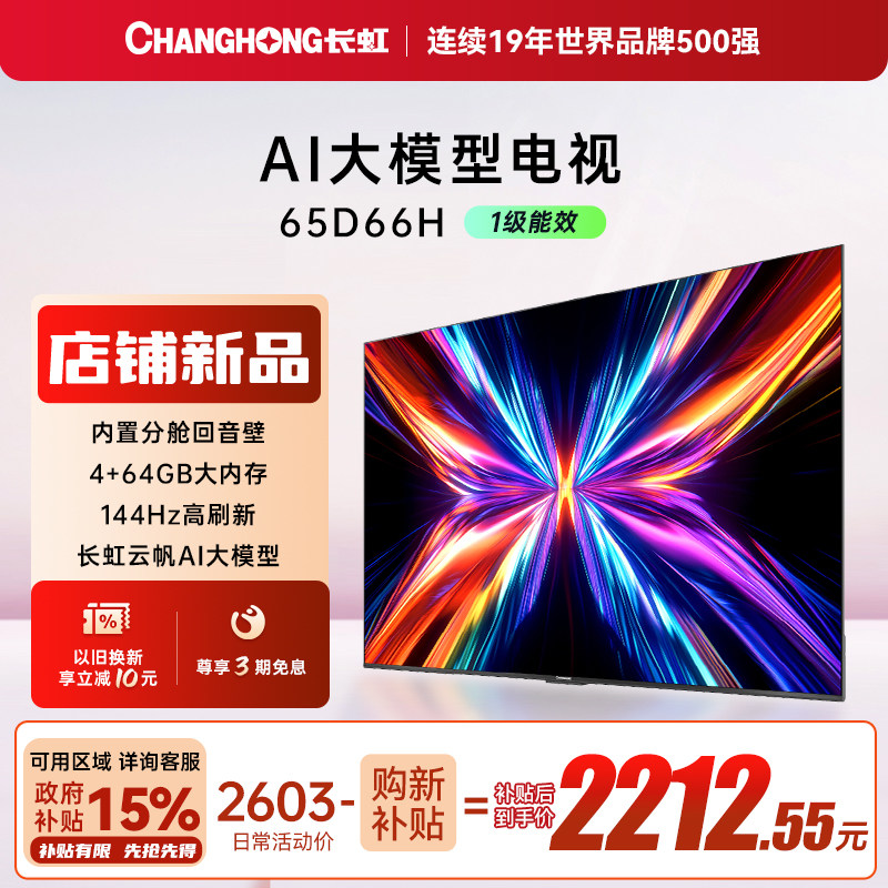 【政府补贴】长虹电视65D66H 65英寸语音智能网络电视客厅家用