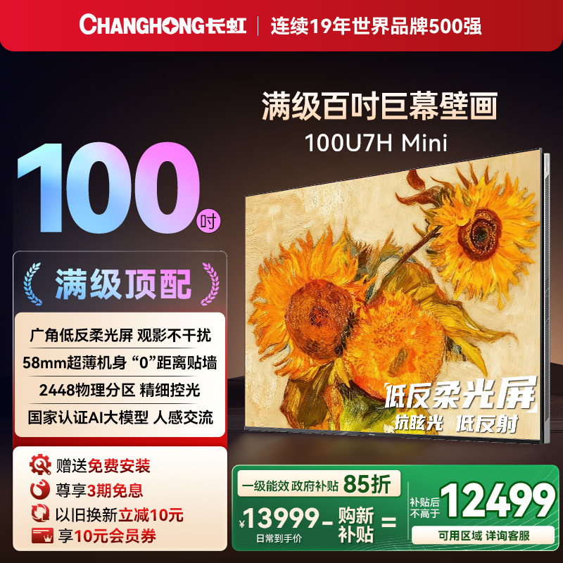 长虹电视100U7H Mini官方旗舰正品100英寸客厅卧室家用电视机