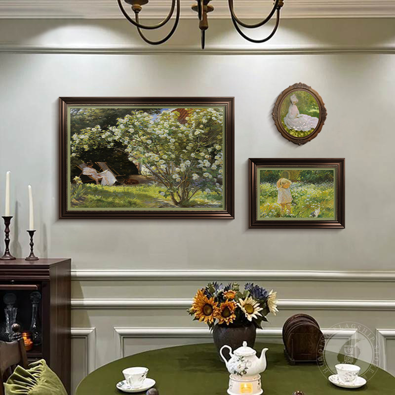 莫奈装饰画美式餐厅复古挂画花园油画中古法式客厅背景墙组合壁画