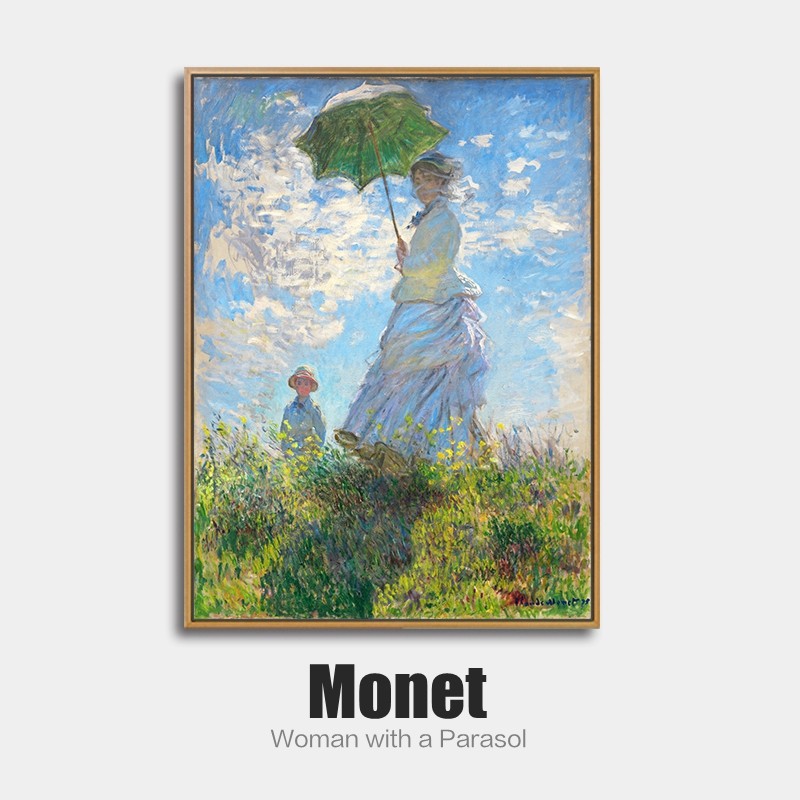 莫奈装饰画客厅挂画撑伞的女人卧室餐厅玄关沙发背景墙印象派壁画