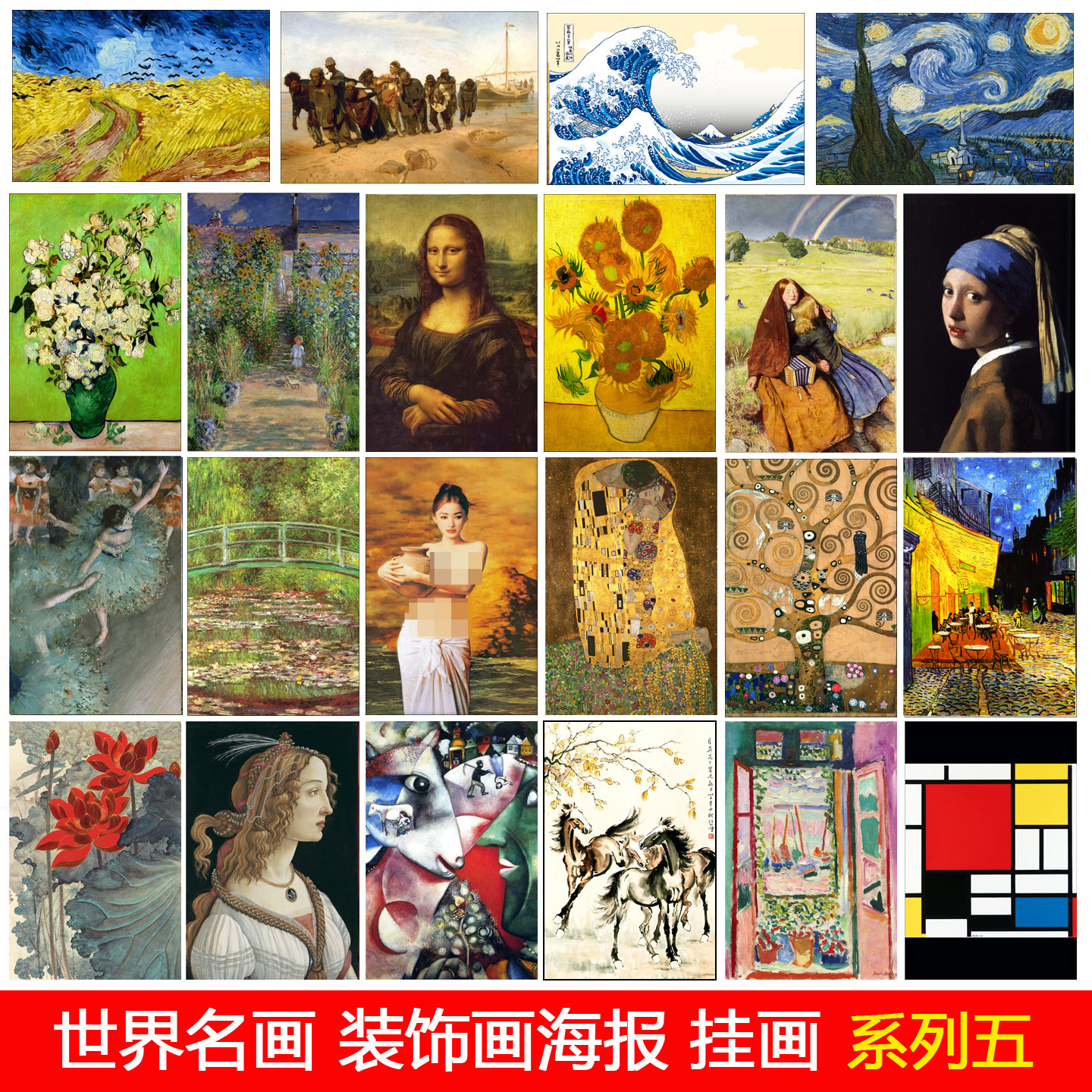世界名画装饰画莫奈睡莲梵高向日葵星空毕加索梦贴画海报客厅挂画