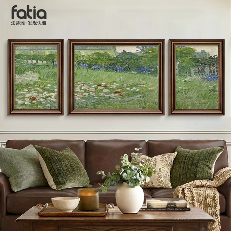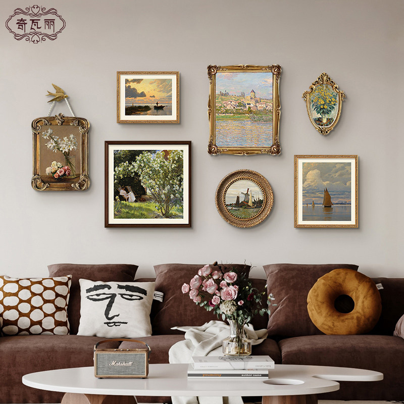 莫奈装饰画客厅沙发背景墙挂画2025新款高级感美式复古组合壁画