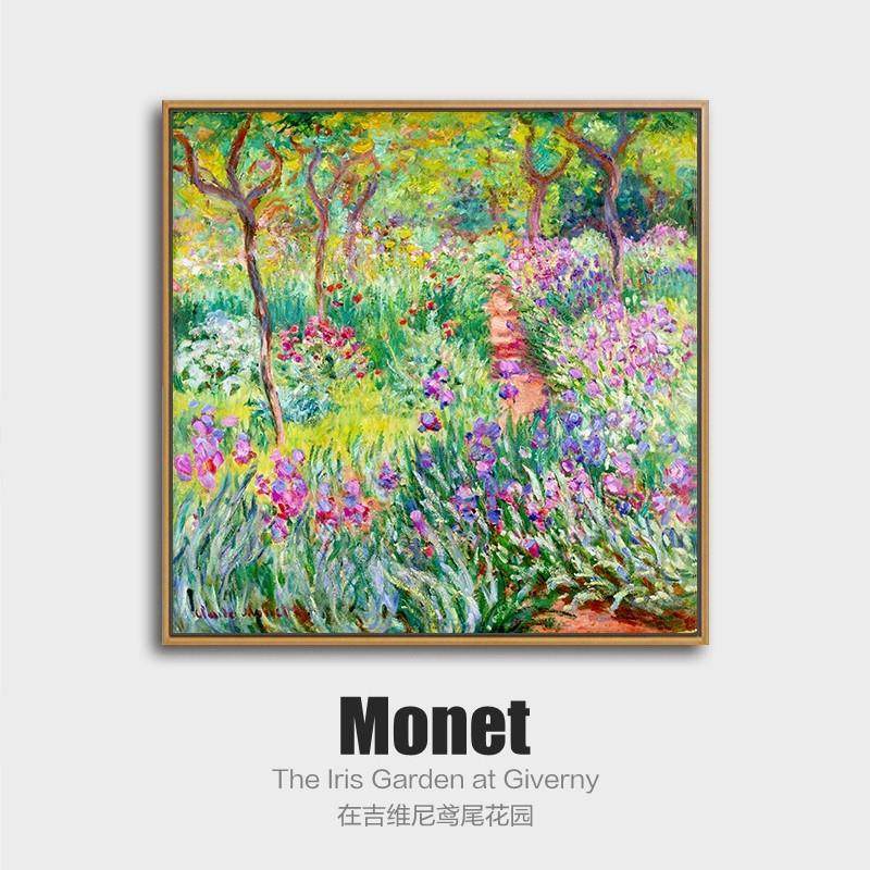 莫奈装饰画客厅挂画鸢尾花园卧室餐厅玄关沙发背景印象派风景壁画
