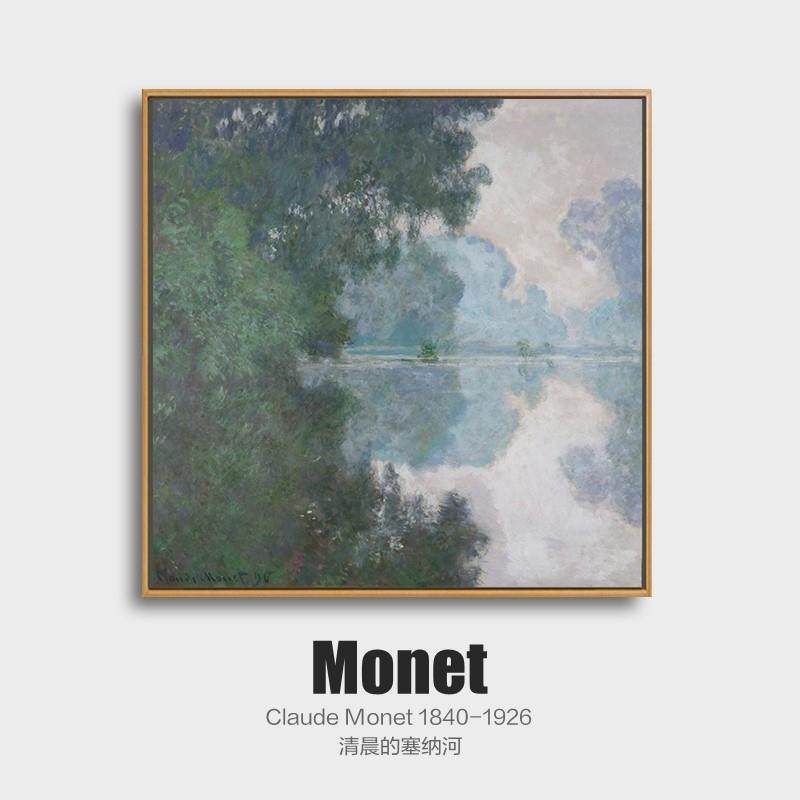 莫奈装饰画客厅挂画清晨的塞纳河书房卧室餐厅玄关沙发印象派壁画