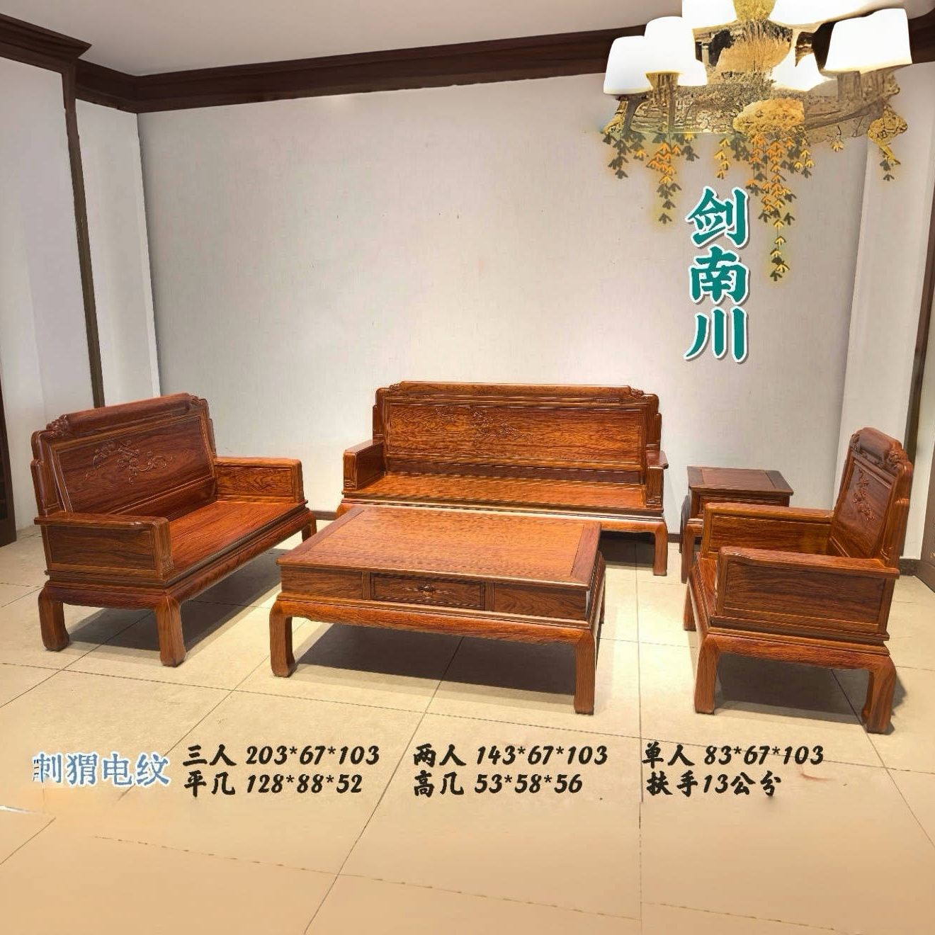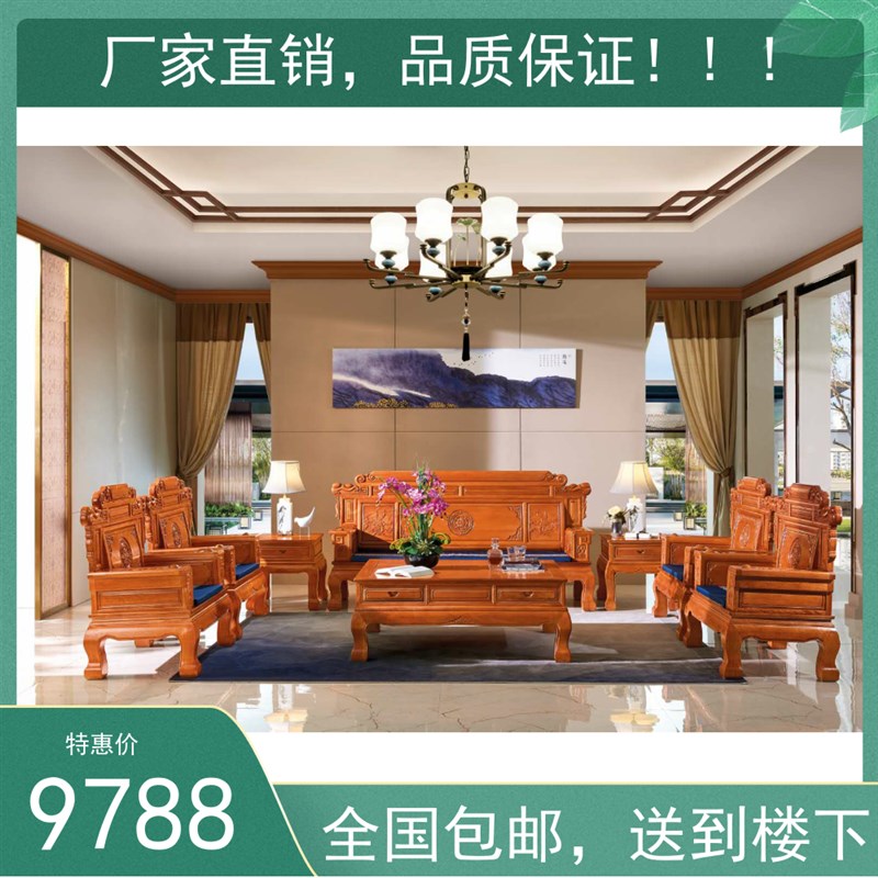 金花梨木沙发全实木新中式客厅红木大套沙发农村全套家具雕花复古