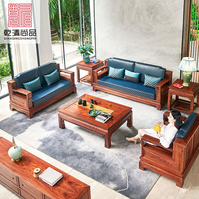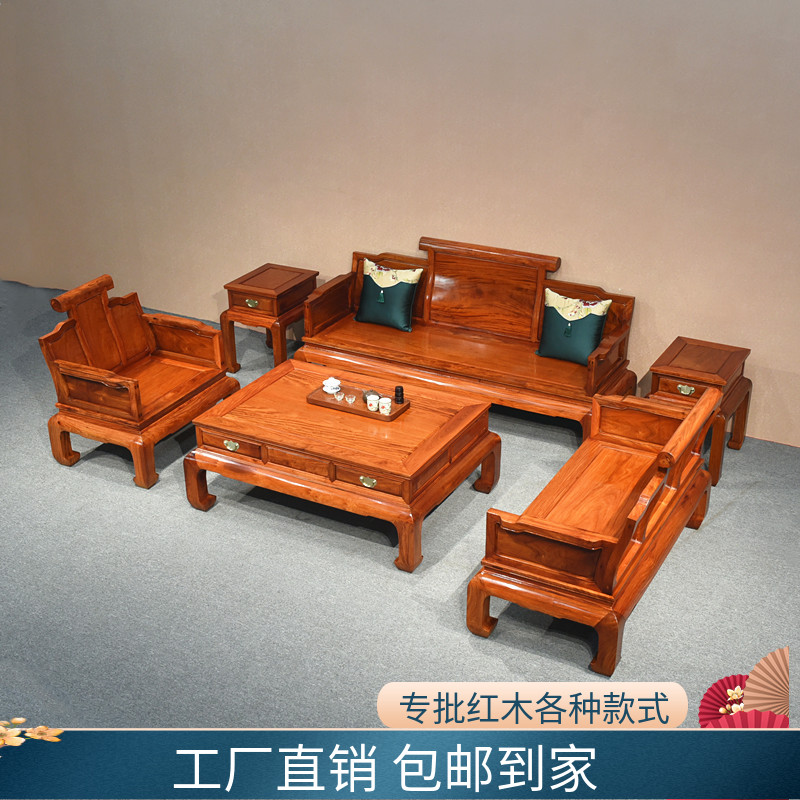 新中式金花梨木全实木沙发家用客厅组合仿古明清雕花工厂红木家具
