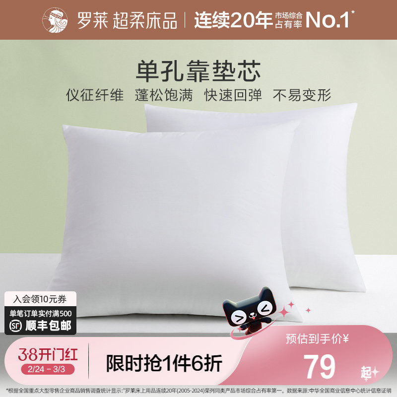 罗莱家纺办公室靠垫腰靠抱枕婚庆枕芯配套65*65单孔大靠垫芯