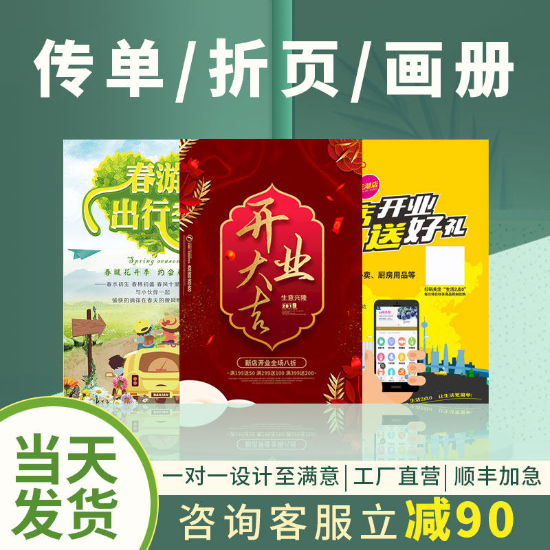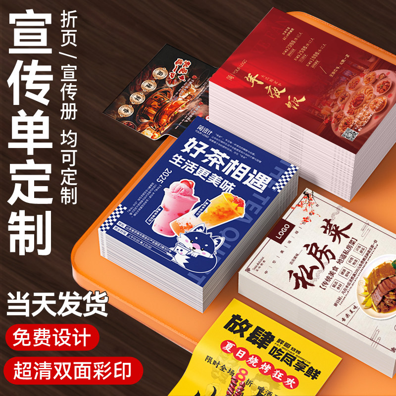 宣传单印制三折页宣传册双面设计制作外卖广告打印定做dm单页海报a4a5铜版纸菜单彩页餐饮新店开业促销宣传页
