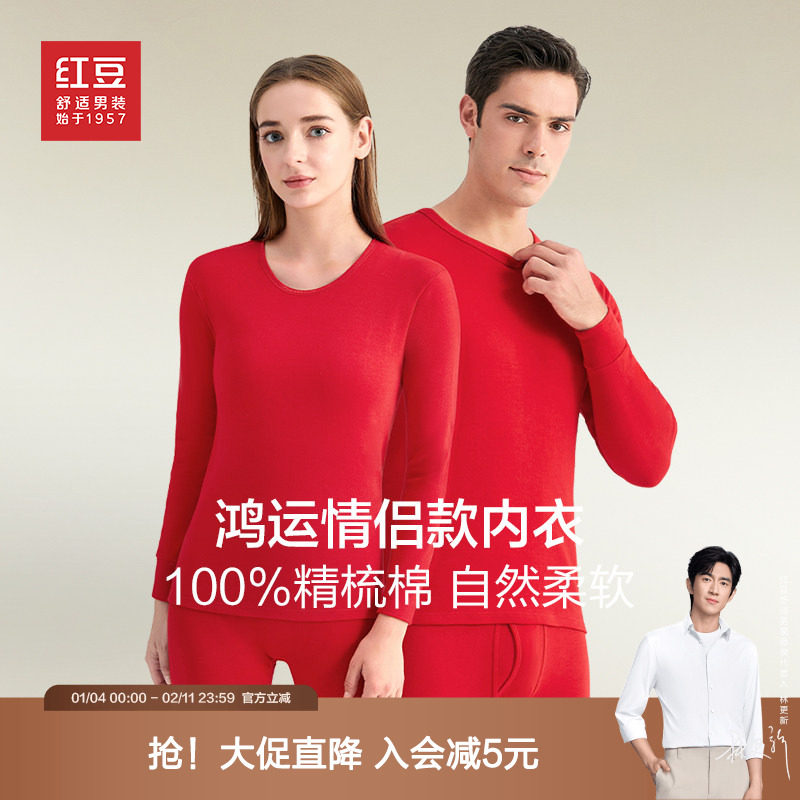 红豆保暖内衣大红色本命年套装男士女士2025结婚喜庆加厚秋衣秋裤