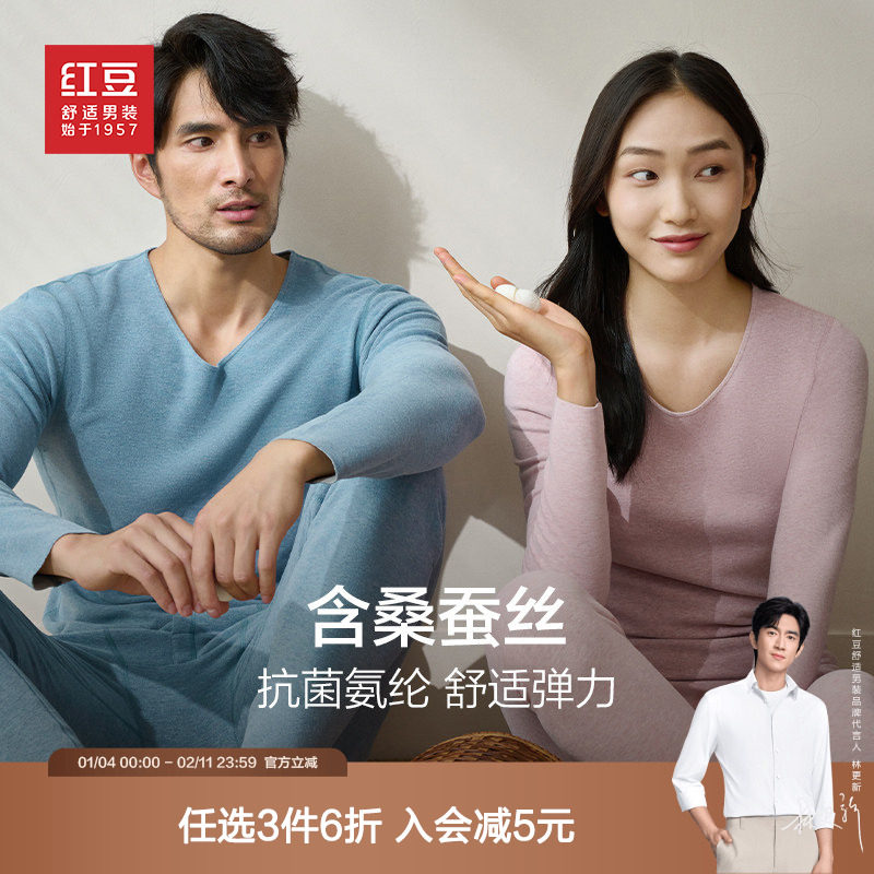 【桑蚕丝礼盒装】红豆保暖内衣套装打底衫男女情侣款磨毛秋衣秋裤