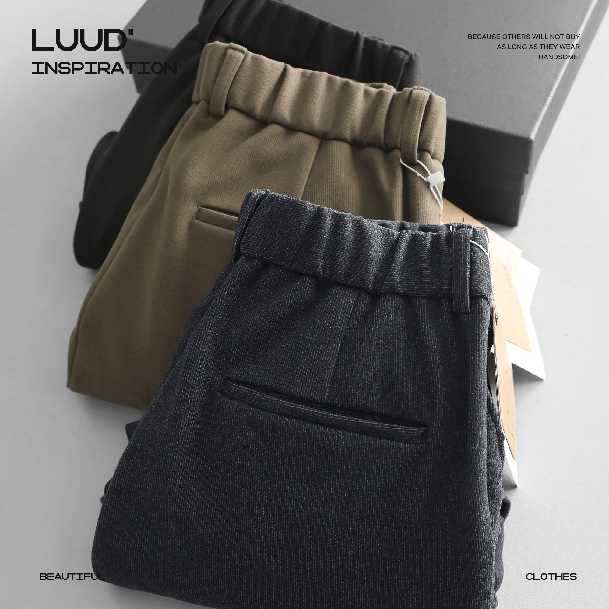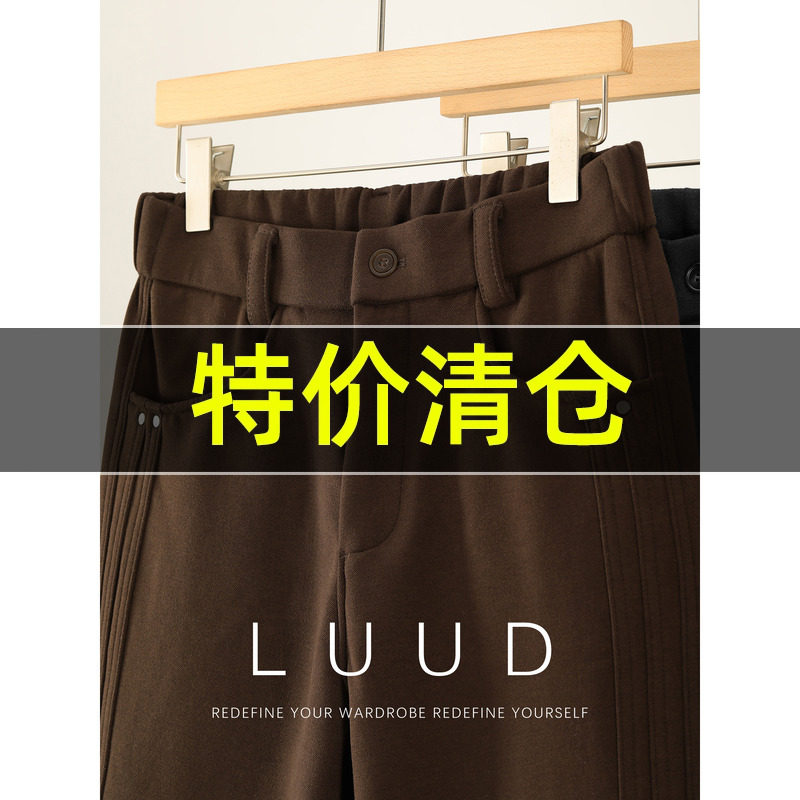 LUUD 潮流直筒毛呢西裤男冬季保暖休闲磨毛阔腿裤半松紧腰长裤子