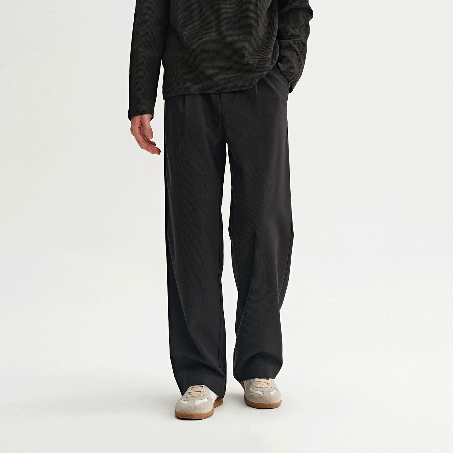 CHINISM丨黑色绒感垂感西裤男冬季宽松直筒裤美式休闲男士裤子