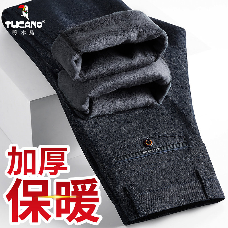 啄木鸟加绒休闲西裤男冬季中老年商务正装直筒男士长裤男款冬厚款
