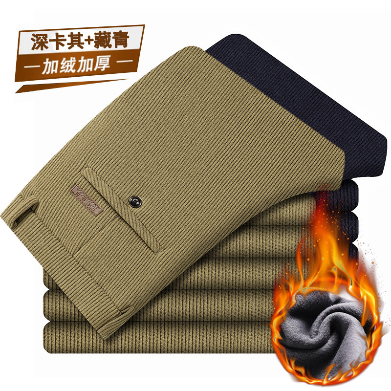 买一送一男士休闲裤灯芯绒男裤中老年西裤男冬季加绒加厚直筒裤男