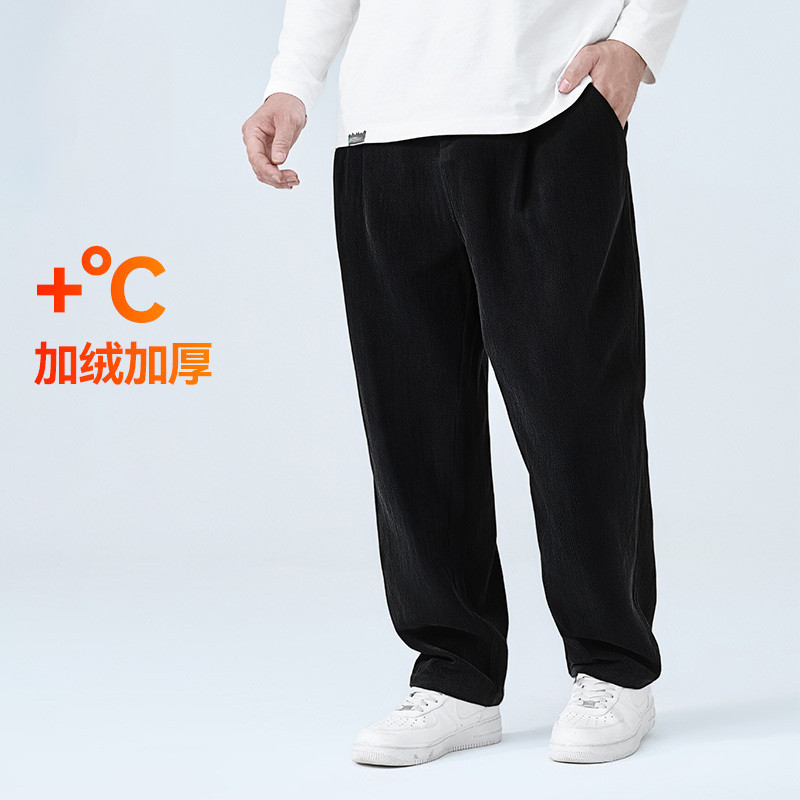 西裤男冬季加绒加厚宽松直筒休闲裤男士胖子加肥加大大码男装裤子