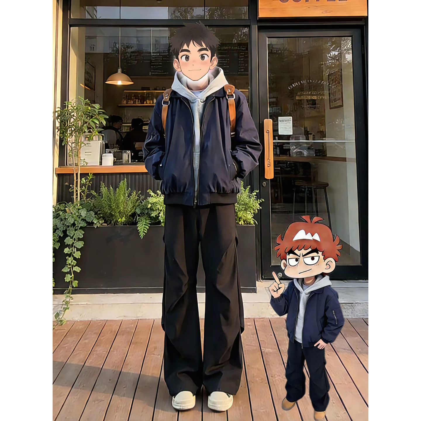 Dream made秋冬季加厚毛呢休闲裤男款老钱风西裤宽松直筒男生裤子