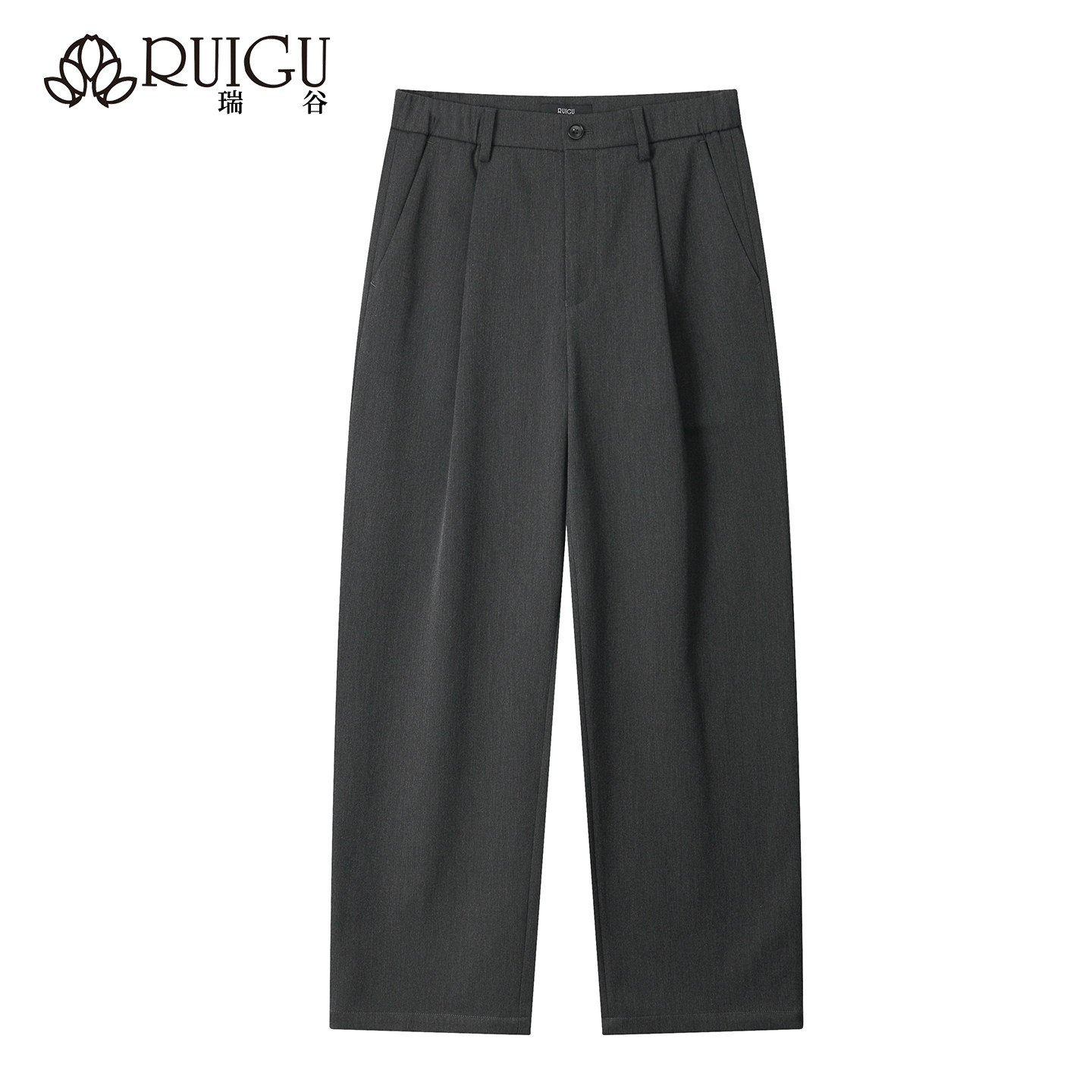好莱坞直筒西裤男冬季休闲保暖免烫垂感长裤可皮带商务纯色高腰裤