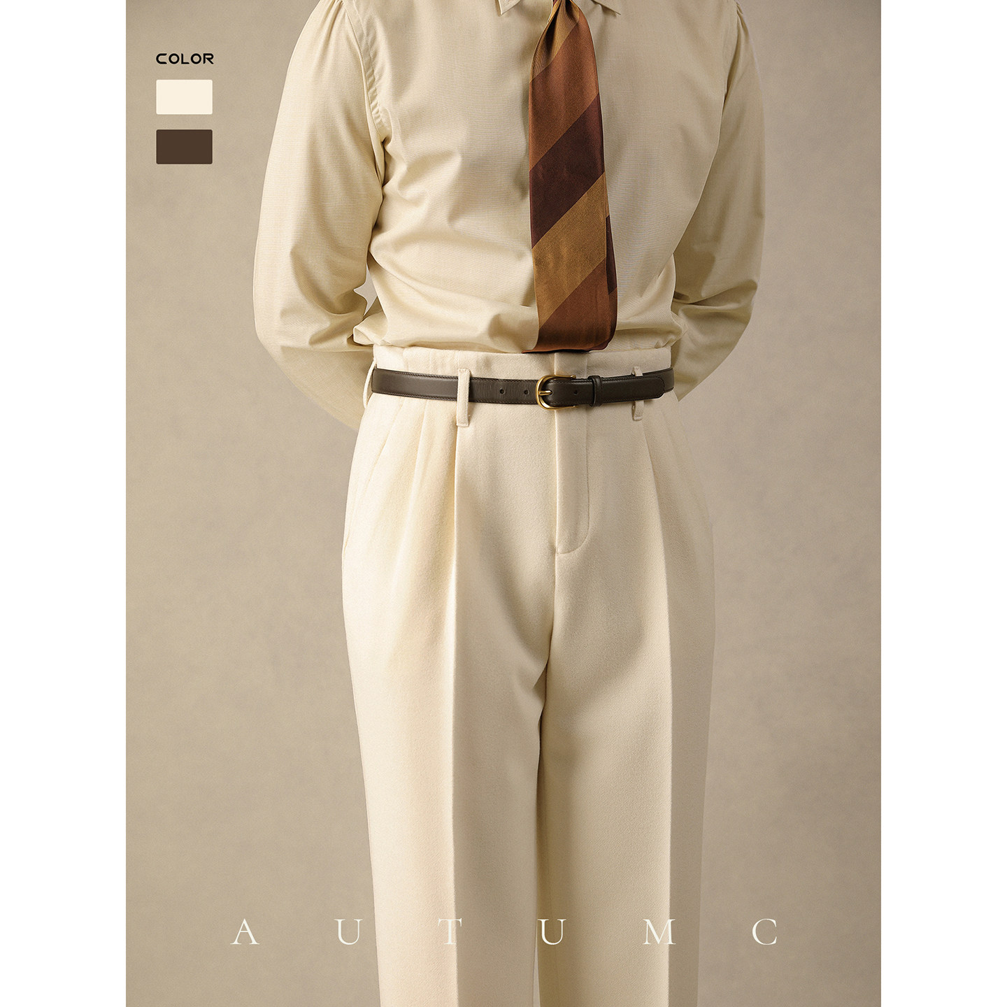 Dream made老钱风打褶呢料西裤男冬季加厚阔腿裤宽松直筒休闲裤子