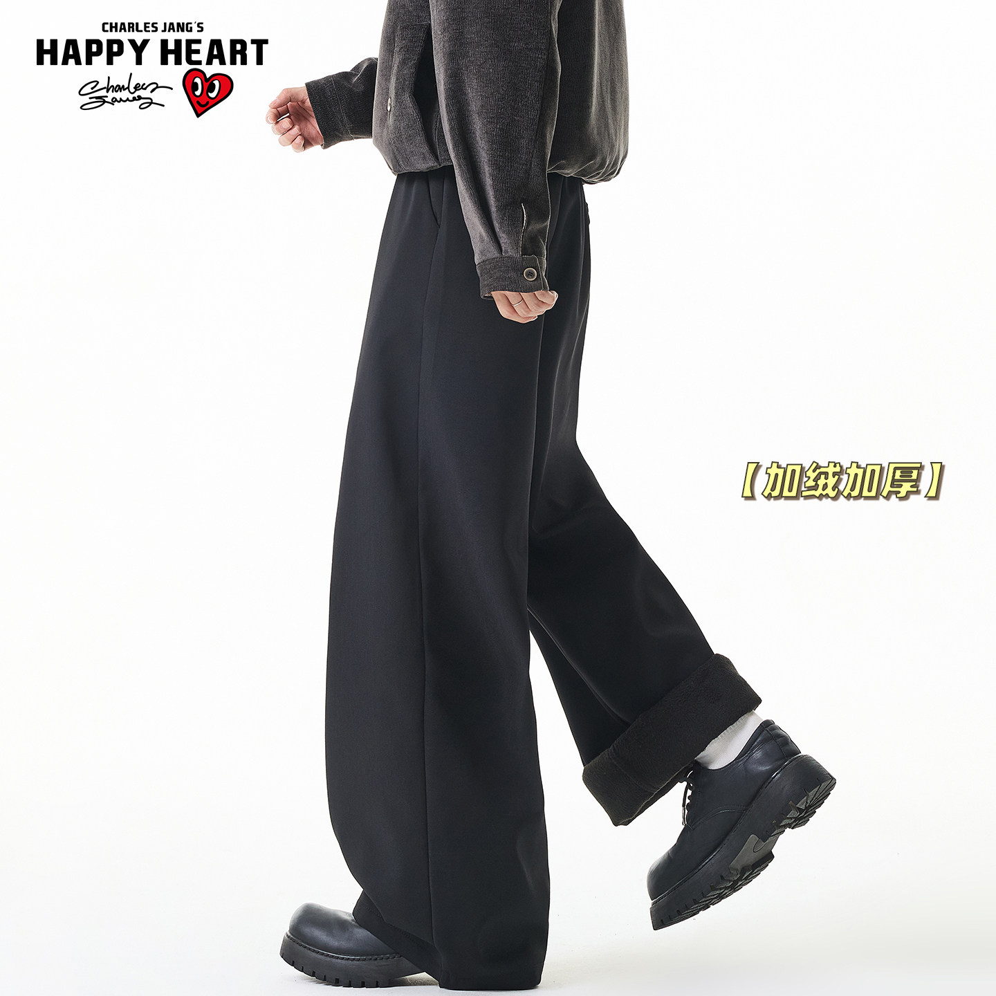 查尔斯桃心加绒加厚垂感西裤男冬季潮牌宽松休闲裤高街直筒阔腿裤
