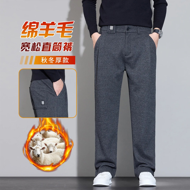 【羊毛桑蚕丝】秋冬款阔腿男士休闲裤宽松直筒商务西裤男冬季裤子