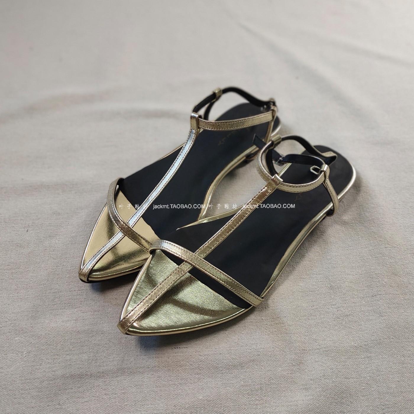 仅9对~纯原!夏末清仓 时髦精入羊皮尖头十字法式平跟罗马凉鞋 女