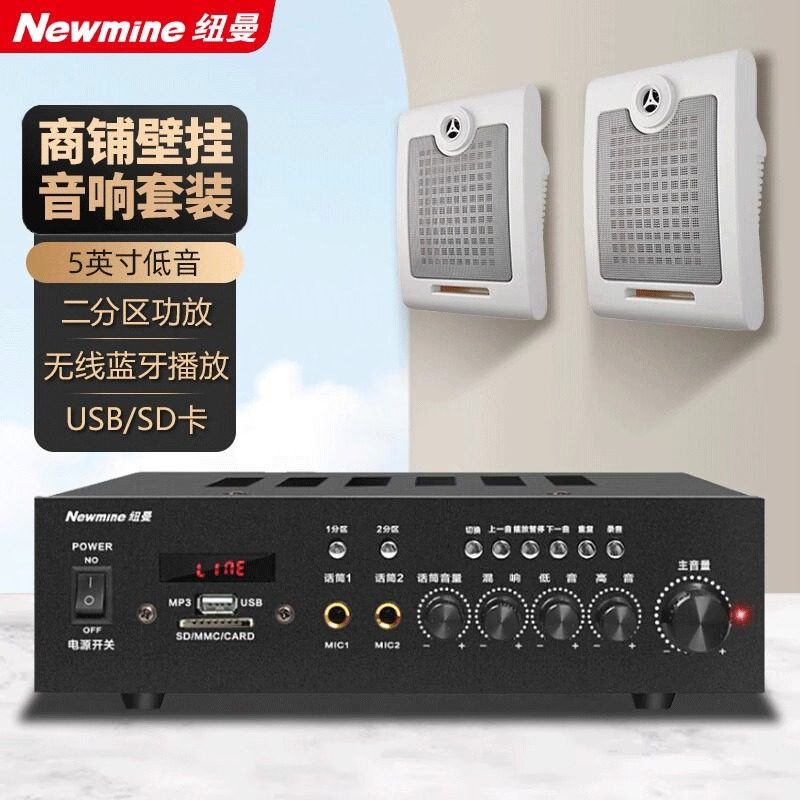 二分区定压功放壁挂音响店铺专用用蓝牙音箱套装会议室餐厅超市商