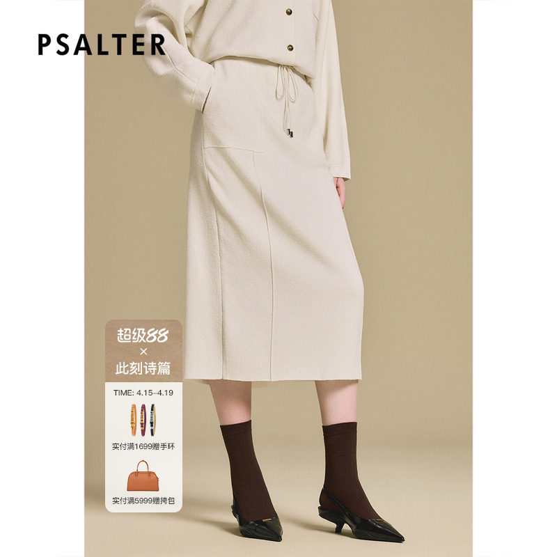 MOISSAC摩萨克秋款休闲风宽松松紧腰针织长款半身裙腰裙女