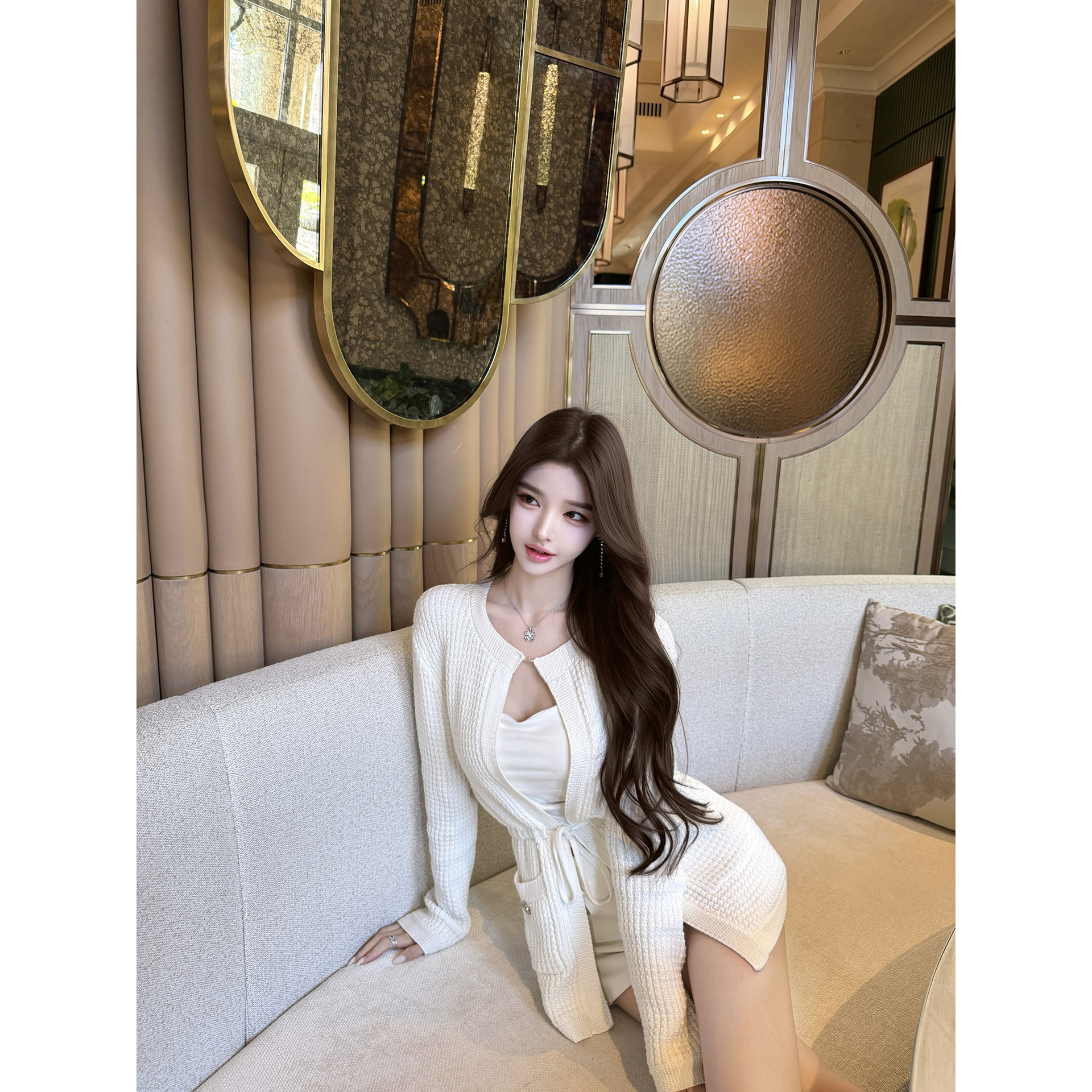 若语定制 挚爱26C 水钻收腰针织开衫连衣裙女纯欲气质性感春秋款