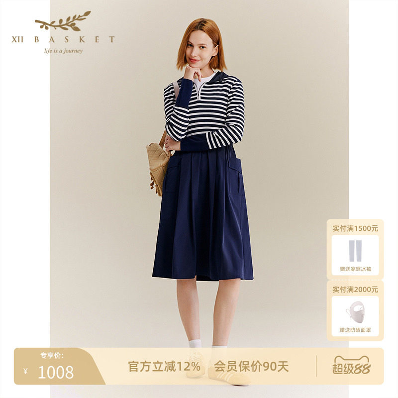 XII BASKET十二篮秋款户外休闲羊毛连帽修身条纹针织连衣裙