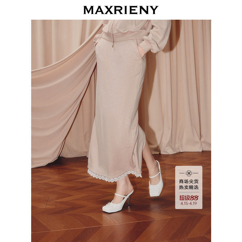 【商场同款】MAXRIENY法式复古半裙蕾丝花边25秋款直筒针织长裙