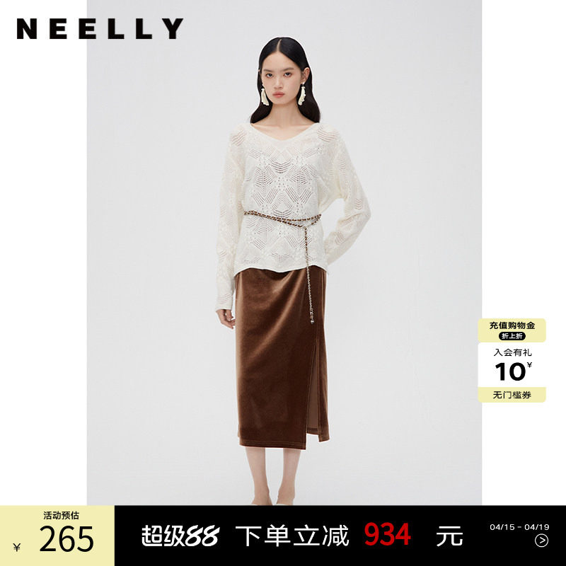 NEELLY纳俪商场同款垂感连衣裙春秋款两件套裙装气质镂空针织套装
