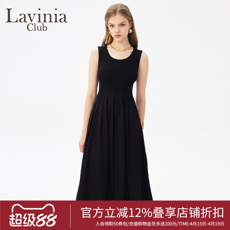 Lavinia法式吊带小黑裙春秋款黑色针织拼接无袖连衣裙L41L102