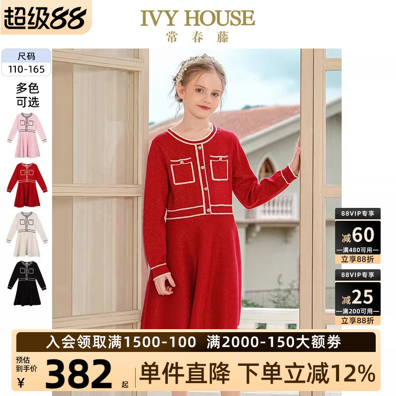 IVY HOUSE常春藤儿童装女童新拜年装秋款 小香风针织连衣裙亲子装