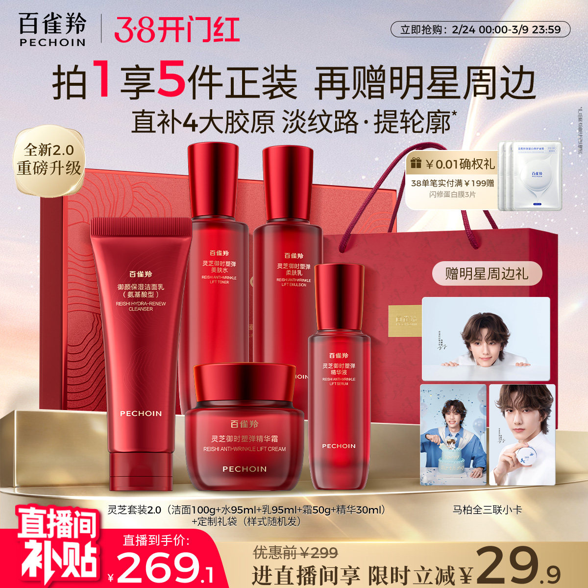 【38现货立抢】百雀羚灵芝水乳套装胶原抗皱紧致化妆品护肤品套装