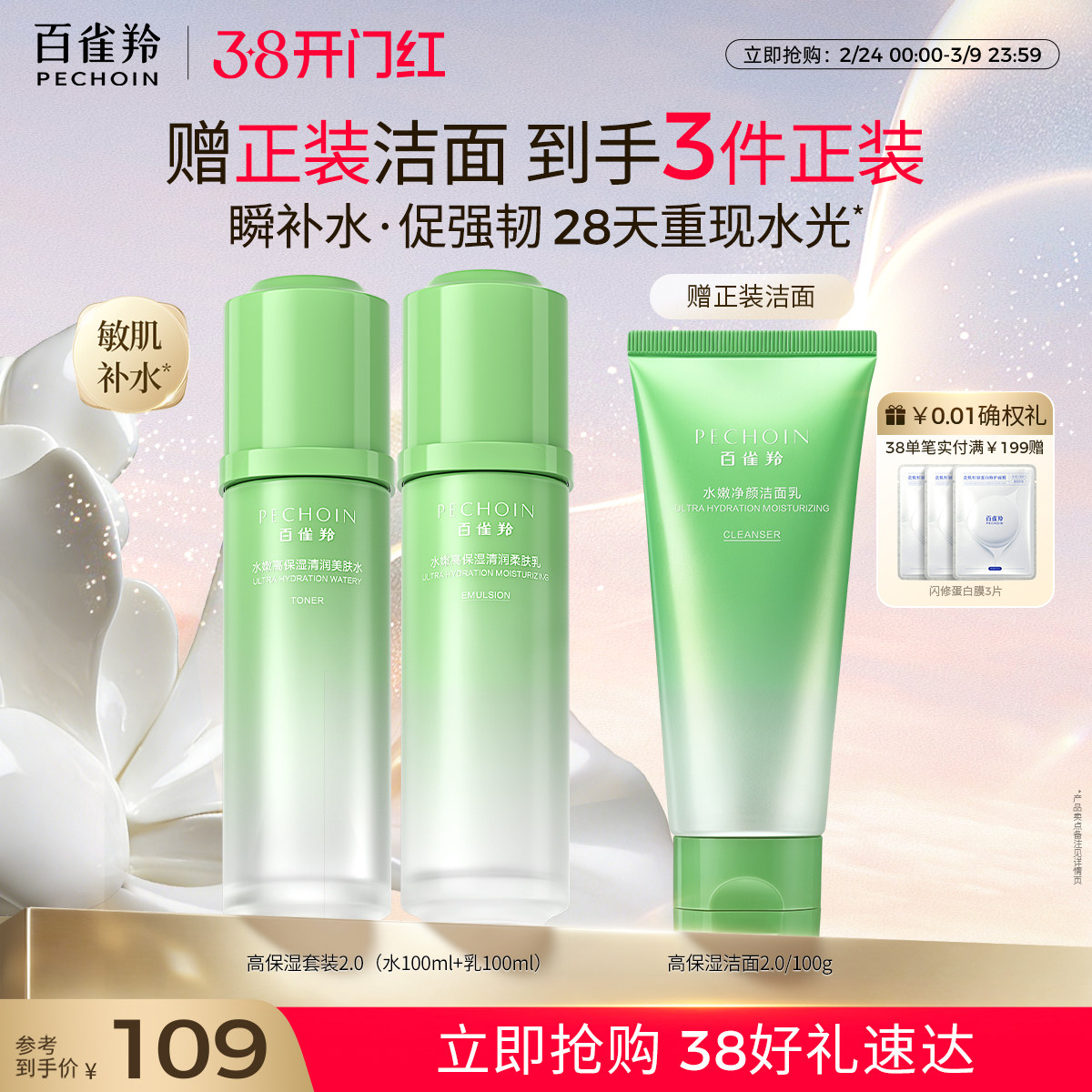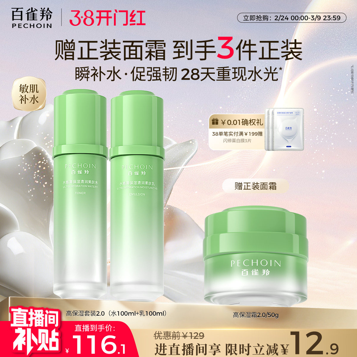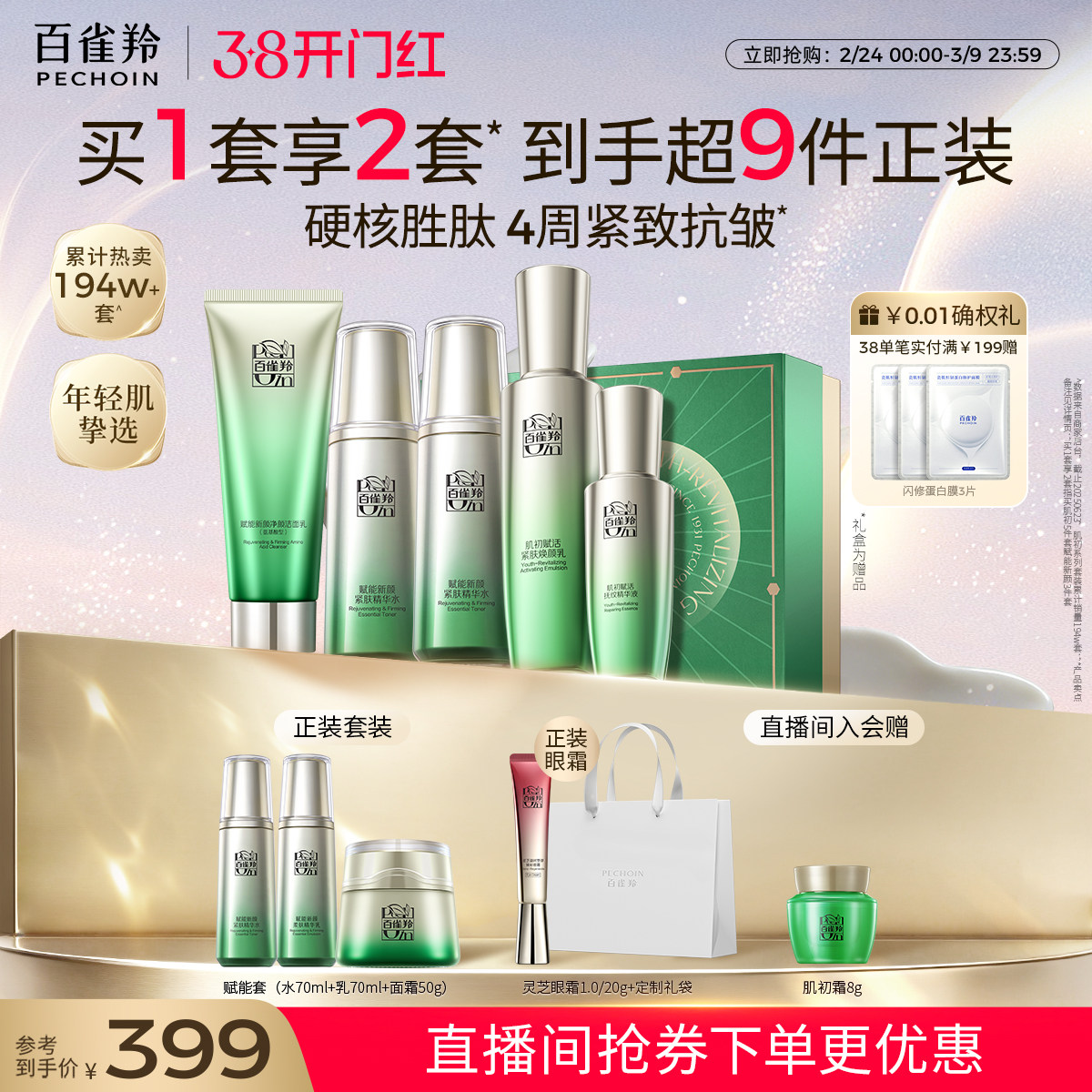 PECHOIN/百雀羚水嫩倍现水乳套装 补水保湿 修护透亮 焕新配方