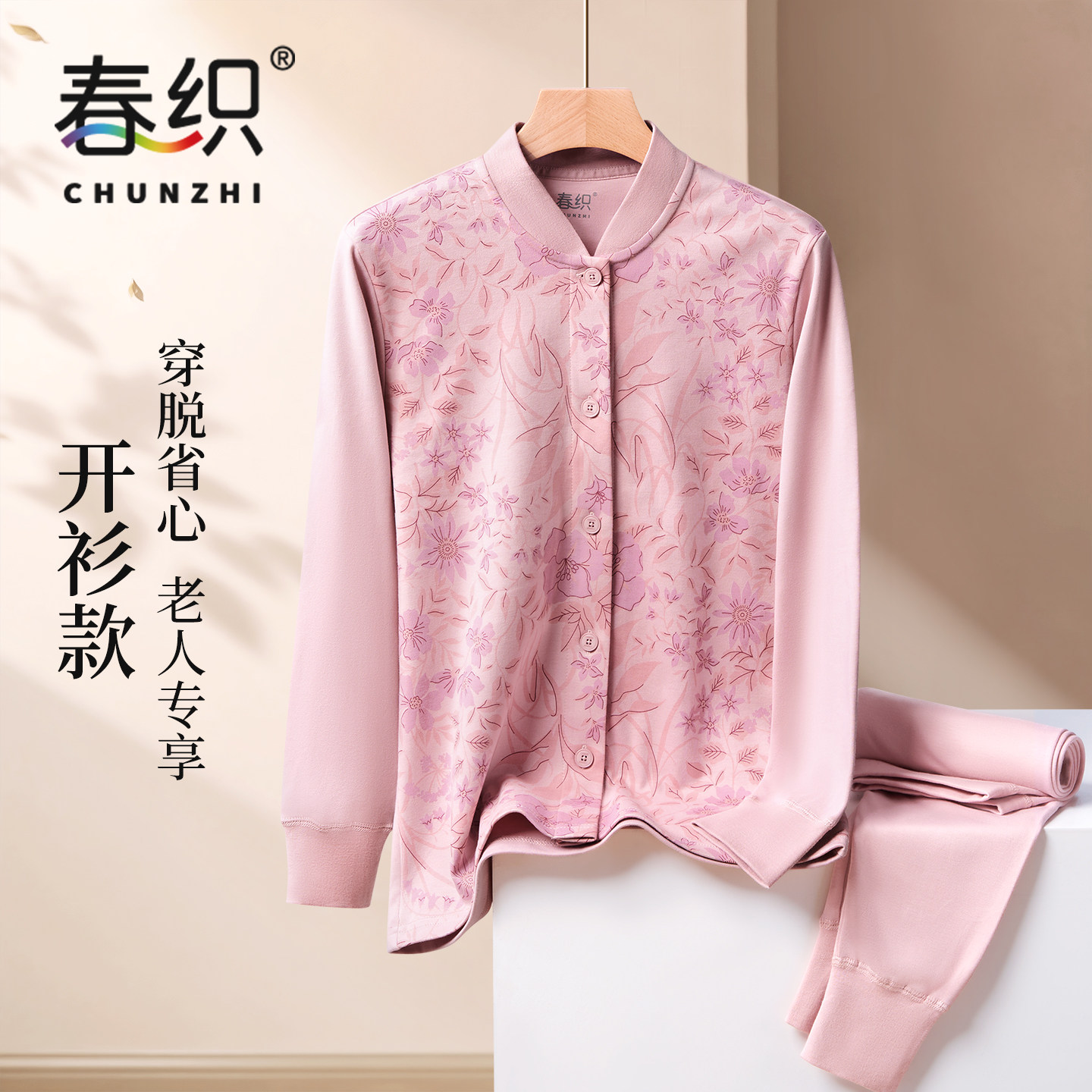 春织老人保暖内衣开衫纯棉套装加厚妈妈秋衣秋裤女中老年棉毛衫男