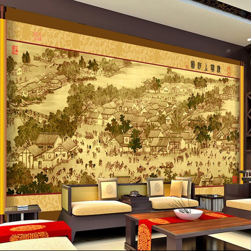 清明上河图全卷背景墙纸壁纸中式酒店餐厅书房墙布会客厅壁画壁布